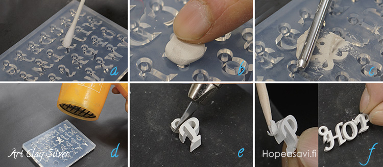 2. Tee Art Clay hopeasavesta pieni pallo kooltaan noin 1 gramma ja täytä tällä valitsemasi kirjain (b).
